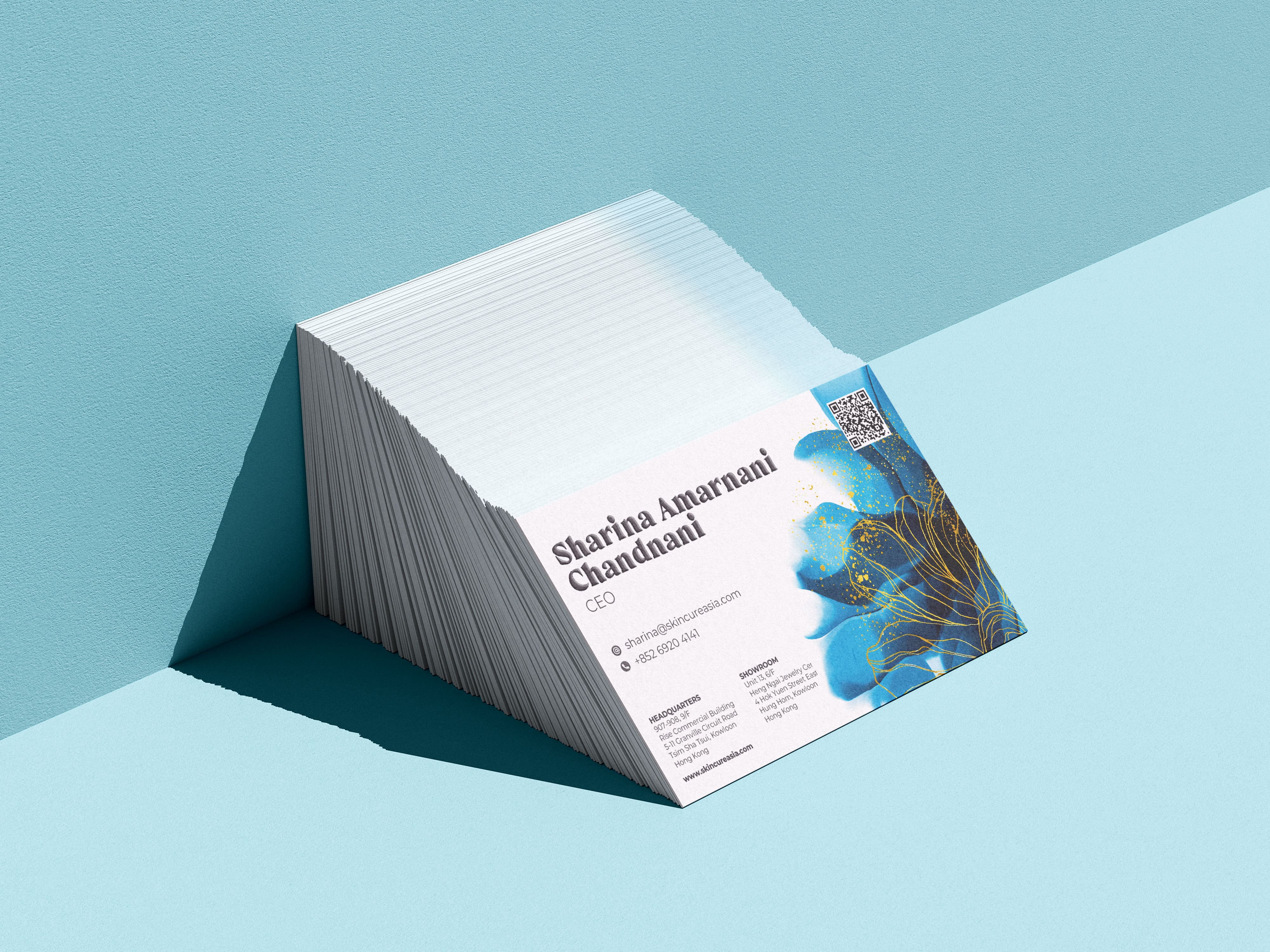 The final design was produced on thick, premium paper stock with embossing and gold foil accents. The upgraded cards stood out during exhibitions and became memorable conversation starters, helping to leave a strong impression on potential clients and partners.